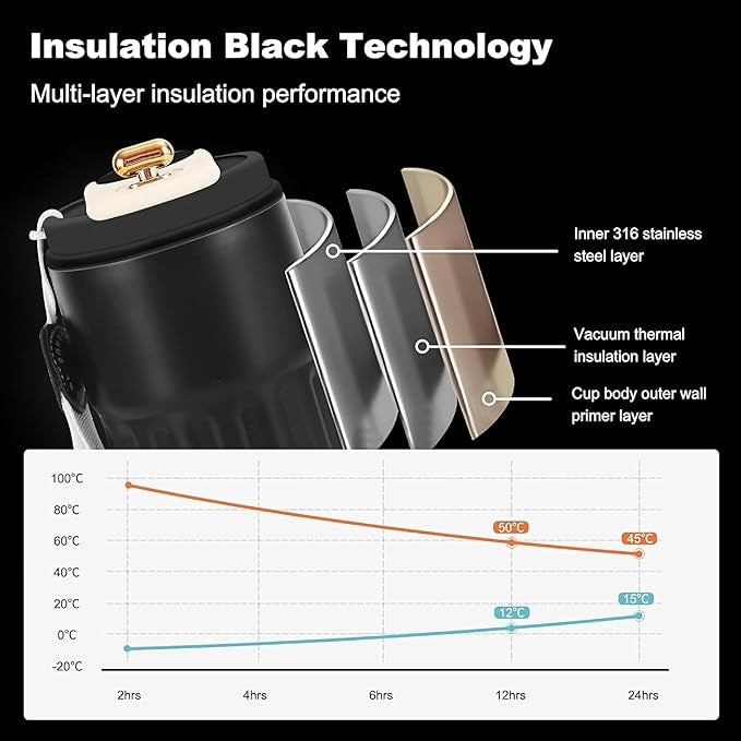 Customized Coffee Mug Cup Digital Display, Thermos Flasks, 460 ml, 316 Stainless Steel Travel Mug, Insulated Vacuum Thermal Mug, Leak-Proof Travel Mug with Lid for Coffee (Black)